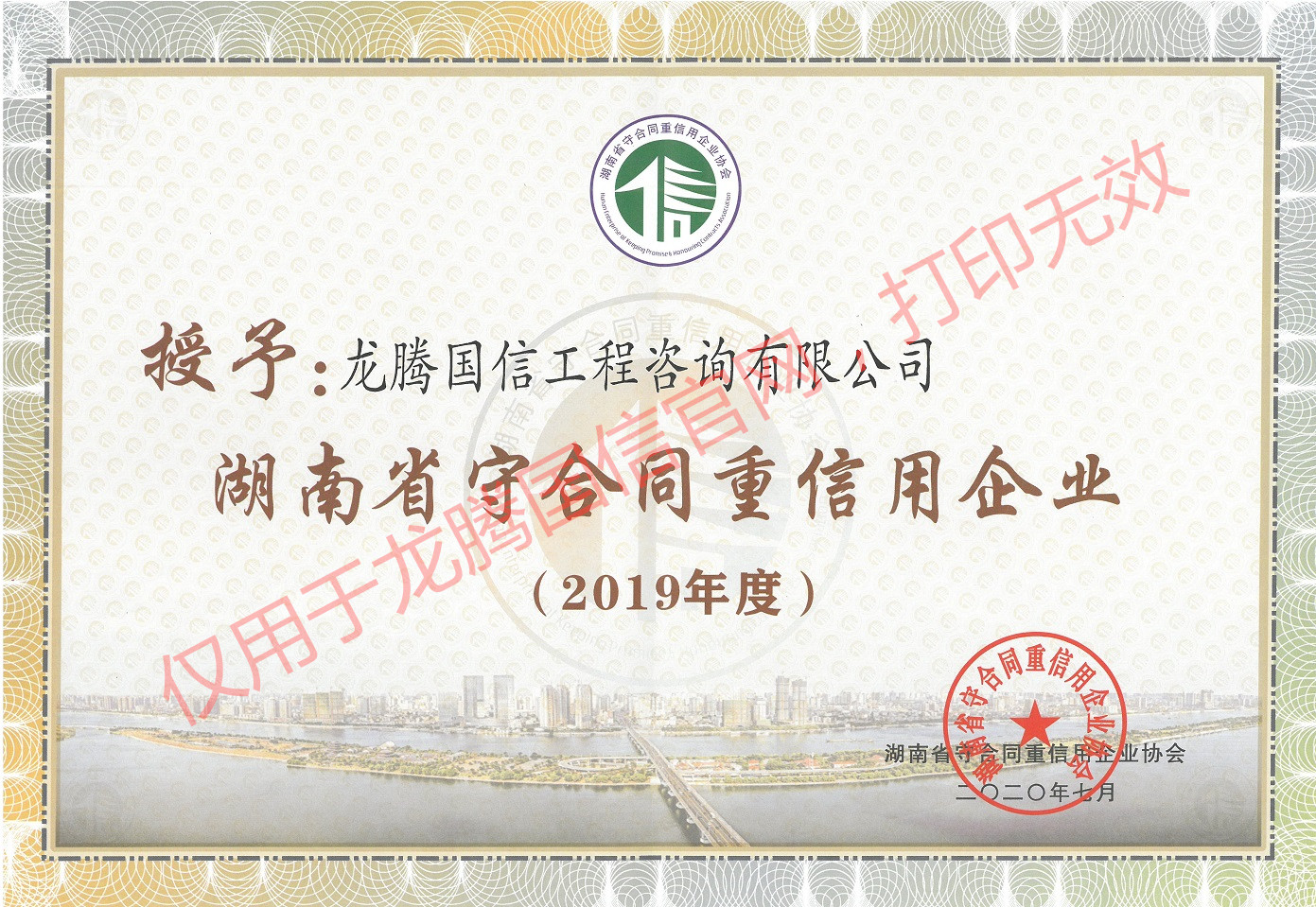 恭賀我公司榮獲湖南省和長沙市2019年度守合同重信用單位榮譽(yù)
