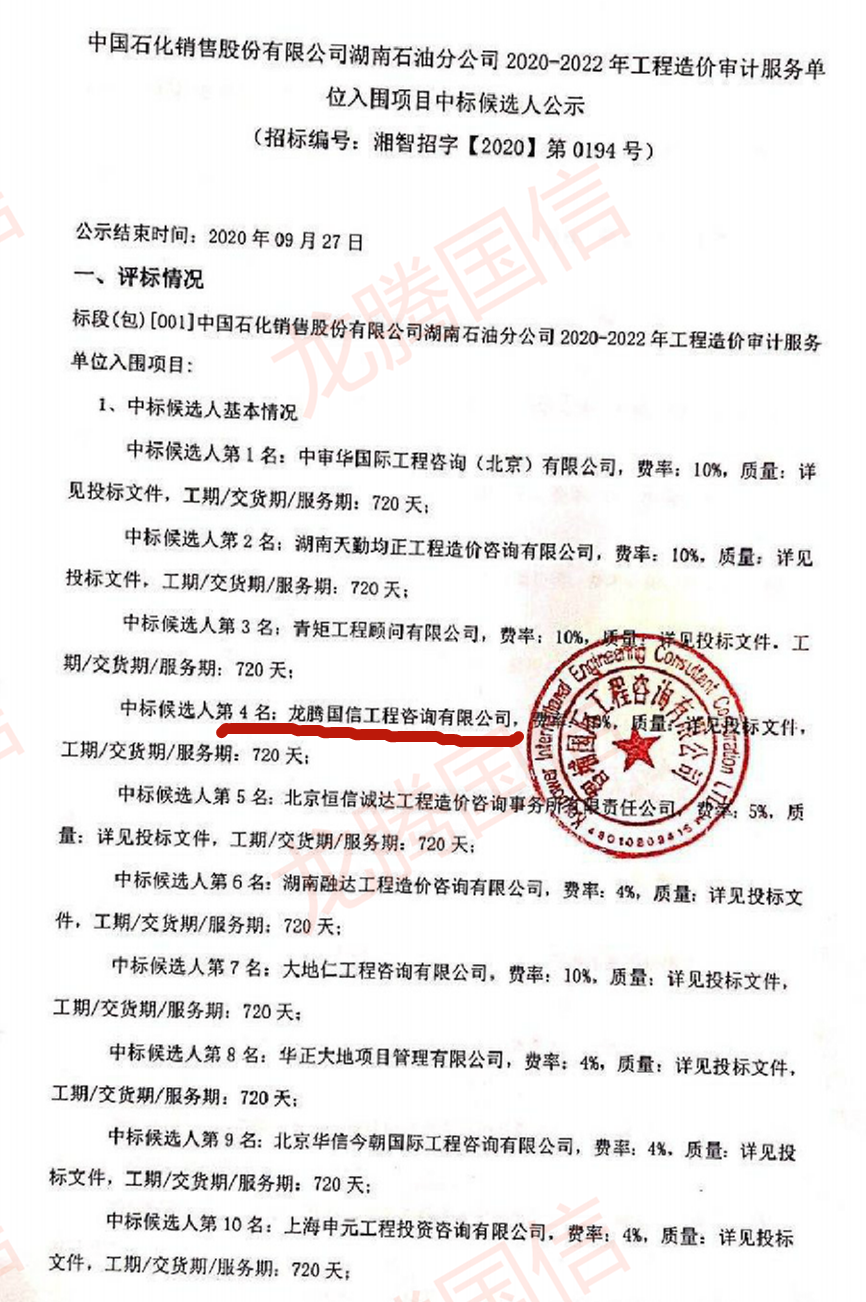 恭賀我公司中標(biāo)‘中國石化湖南石油分公司2020-222年工程造價審計機(jī)構(gòu)庫’