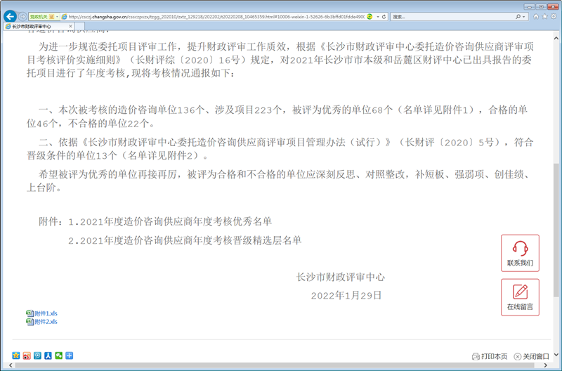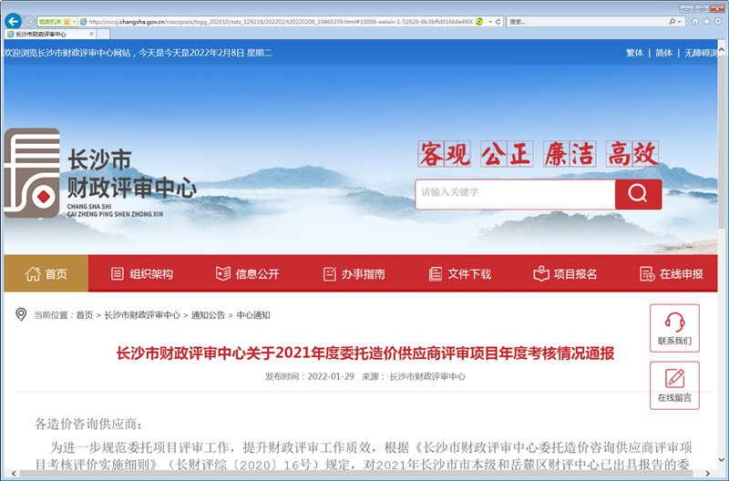 近日,長沙市財政評審中心為進一步規(guī)范委托項目評審工作,提升財政評審工作質(zhì)效,根據(jù)《長沙市財政評審中心委托造價咨詢供應(yīng)商評審項目考核評價實施細(xì)則》(長財評綜〔2020〕16號)規(guī)定,對2021年長沙市市本級和岳麓區(qū)財評中心已出具報告的委托項目進行了年度考核,龍騰國信在考核結(jié)果中獲得“優(yōu)秀”。