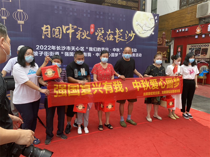 龍騰國信黨支部、龍騰國信志愿者聯(lián)盟近日在長沙市天心區(qū)太平街古戲臺作為協(xié)辦單位,開展四季同行雷鋒家鄉(xiāng)學(xué)雷鋒天心區(qū)文明實(shí)踐志愿服務(wù)“滿天星”行動暨坡子街街道“強(qiáng)國復(fù)興有我,中秋愛心圓夢”志愿服務(wù)活動。