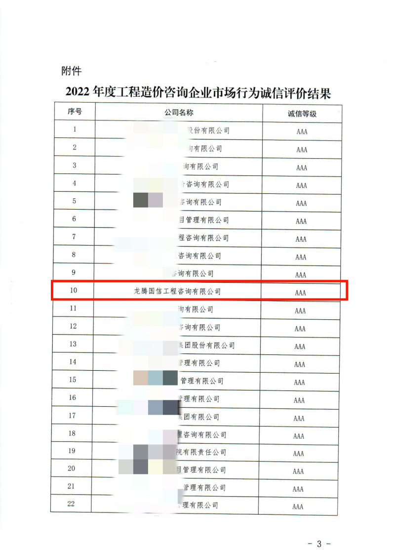 【喜報(bào)】龍騰國信再獲長沙市住房和城鄉(xiāng)建設(shè)局2022年度AAA級信用企業(yè)