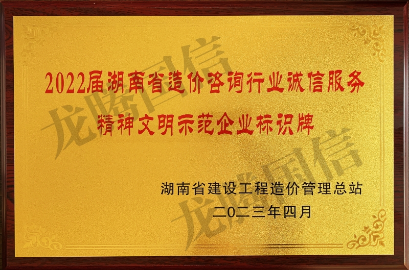 再獲授牌!龍騰國(guó)信獲湖南省造價(jià)咨詢行業(yè)誠(chéng)信服務(wù)精神文明示范企業(yè)