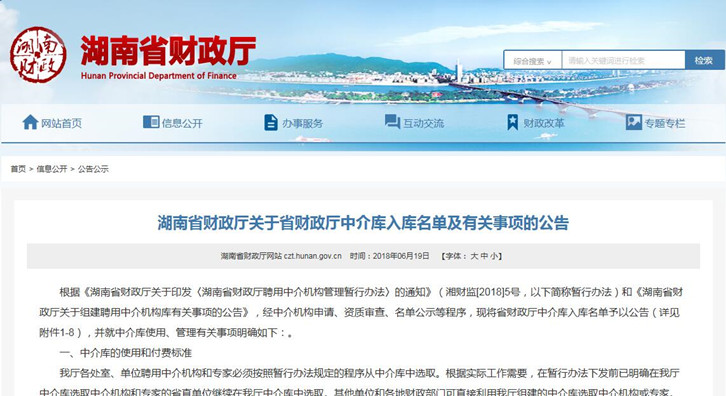 熱烈祝賀我司成功入圍“湖南省財政廳中介機(jī)構(gòu)庫”