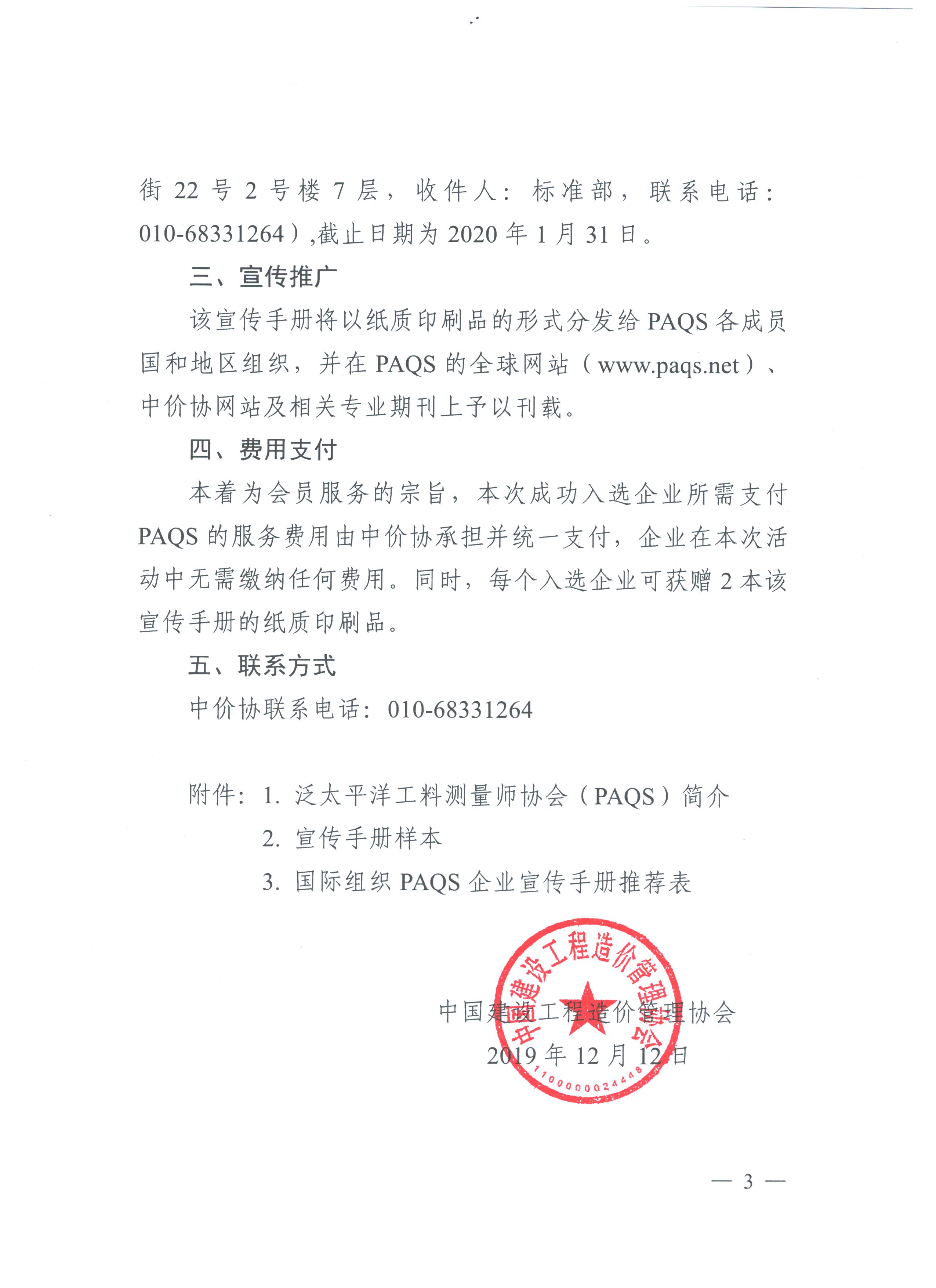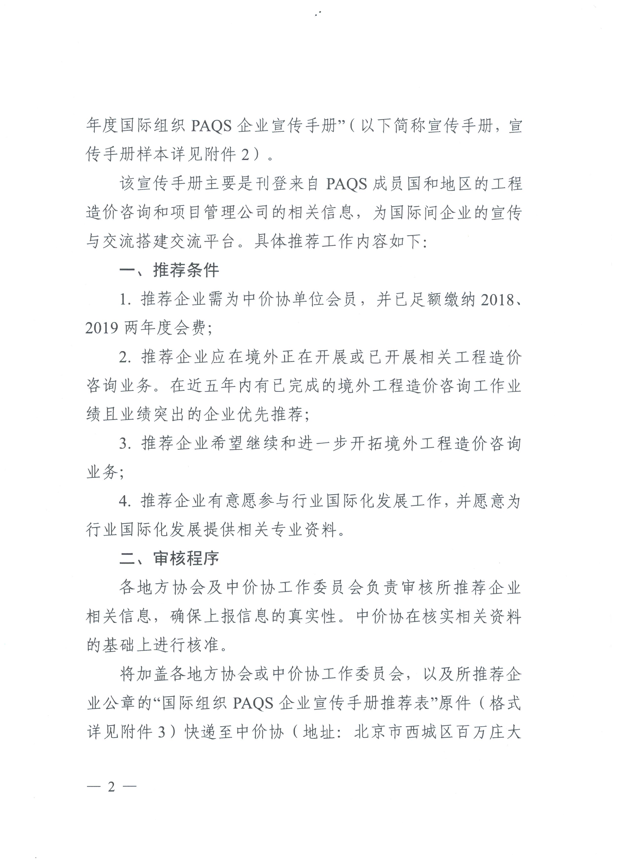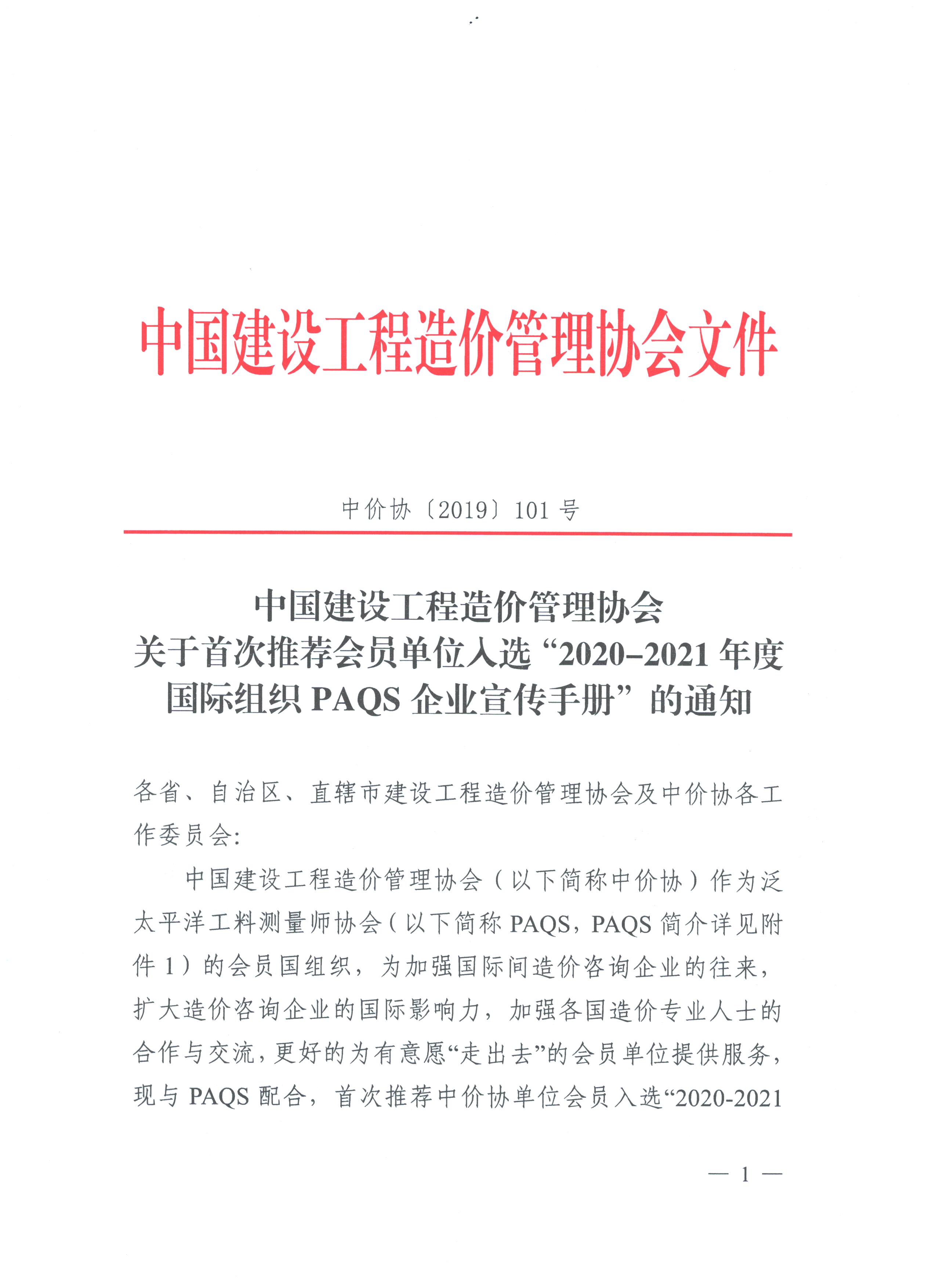 中國(guó)建設(shè)工程造價(jià)管理協(xié)會(huì)關(guān)于首次推薦會(huì)員單位入選“2020-2021年度 國(guó)際組織PAQS企業(yè)宣傳手冊(cè)”的通知