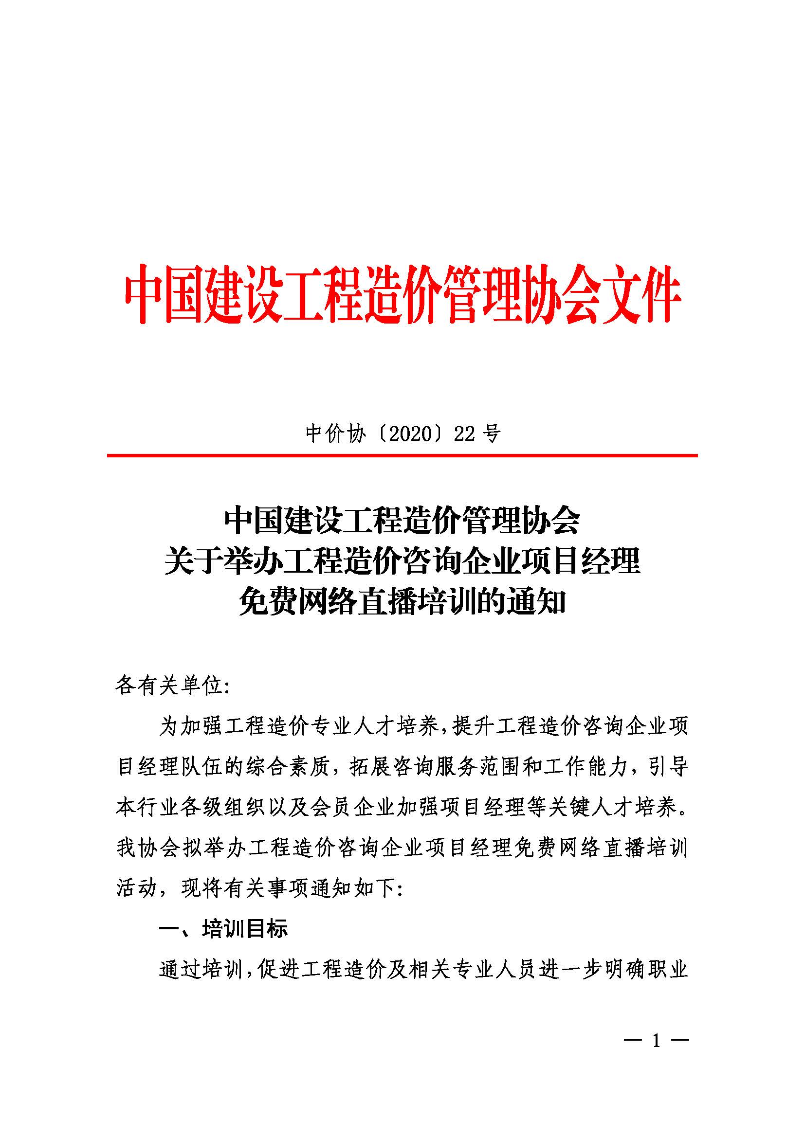 轉(zhuǎn)發(fā)中國建設(shè)工程造價(jià)管理協(xié)會(huì)關(guān)于舉辦工程造價(jià)咨詢企業(yè)項(xiàng)目經(jīng)理免費(fèi)網(wǎng)絡(luò)直播培訓(xùn)的通知